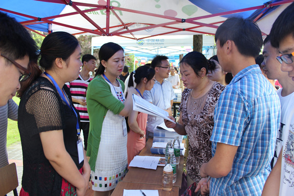 此次高招咨詢會受到學生及家長的廣泛關注,雖然天空下起了小雨,但這依然抵擋不住考生和家長的咨詢熱情,仍吸引了3萬多人前來咨詢報考問題。上午八時,高招會現場人頭攢動,不少招生展臺前已經排起了長龍,有的家長挨個咨詢意向學校的招生計劃、分數線,有的考生站在展臺旁,仔細傾聽,用紙筆記錄各學校的情況,不少熱門高校展棚里外被圍得水泄不通,出現了家長扎堆取經的現象。各大高校用展板和傳單的形式將自家的亮點和優勢展現出來,到場的招生代表耐心回答考生和家長提出的問題,介紹安徽新華學院的情況以及今年的招生政策,現場氣氛十分火爆。