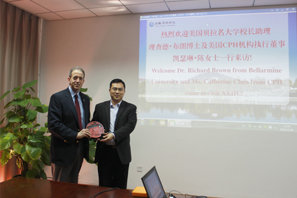 Dr. Richard Brown分別從地理位置、發(fā)展歷史、專業(yè)課程設(shè)置、國際合作項目開展等方面介紹了美國貝拉名大學(xué)的情況。他表示,很高興來到美麗的安徽新華學(xué)院,希望能夠通過此次訪問,推進兩校之間國際合作項目的開發(fā)。