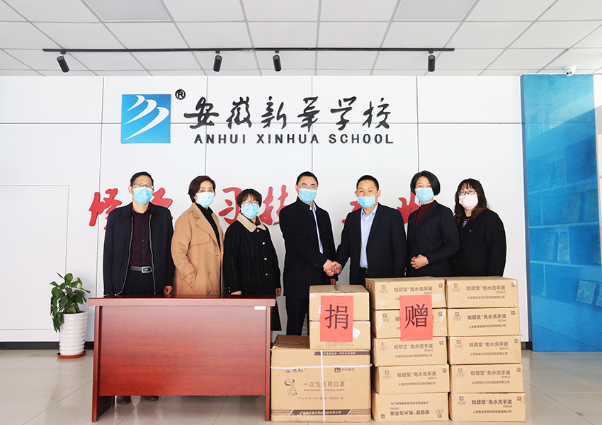 桃李滿天下,情暖四月天。4月15日上午,安徽新華學(xué)校1999級(jí)畢業(yè)學(xué)子、現(xiàn)任安徽銀通物業(yè)管理有限公司董事長兼總經(jīng)理周名奎,攜公司一行四人來到學(xué)校,為母校捐贈(zèng)一批防疫口罩和免洗手酒精噴劑。捐贈(zèng)儀式簡短而熱烈,校長助理余申富、學(xué)生處處長汪宏懷、總務(wù)處副處長仇玉瓊參加受贈(zèng)儀式。